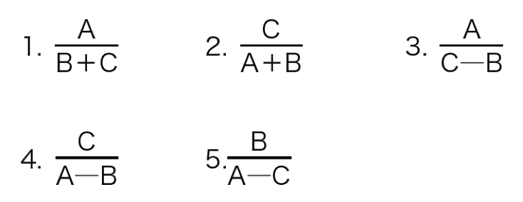 これで繁分数から変形できました。ここまで求めると選択肢に自分が求めた解答があるはずです。
