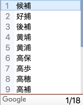 候補選択ショートカットは「1–9」の場合は以下のようになります.